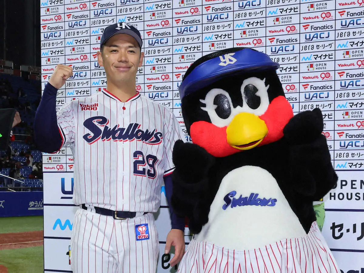 神宮にライアンコールが響き渡る中でヒーローインタビューに登場した小川は「とにかく流れを引き込みたいと思っていましたし、諦めない、負けない強い気持ちで何とかチームに勢いを持ってこられるようにと思ってマウンドに上がりました」とチームに今季をもたらした快投を回想。自身2度目となるマダックス達成で今季初勝利を挙げ「凄くうれしいですし、寒い中集まってくれたファンの皆さんにいい試合見せられて良かったです」と笑顔を見せた。