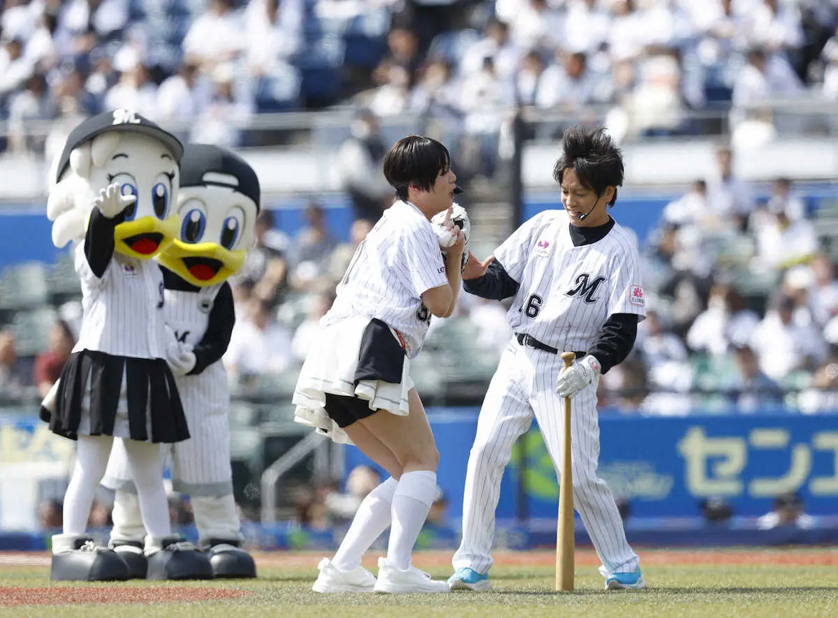 ロッテ ぺこぱが始球式に登場 シュウペイ「密かにずっと…」