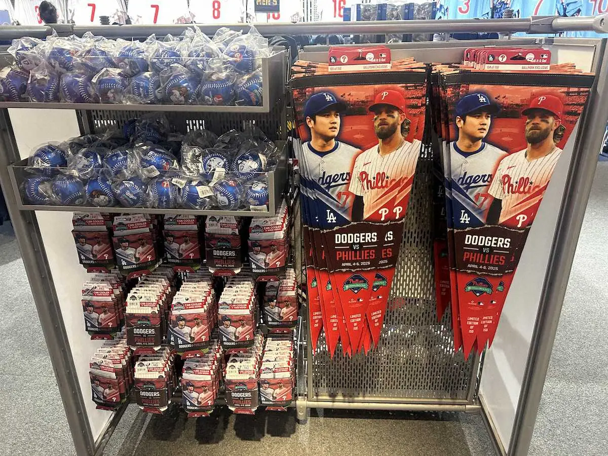 ペナント(14.99ドル=約2200円)は150個限定でシリアルナンバー入り。ボール(14.99ドル=約2200円)、缶クーラー(7.99ドル=約1170円)で販売され、「APRIL4―6.2025」といずれも今回の3連戦の日付が記された限定品とあって、多くのファンが買い求めていた。