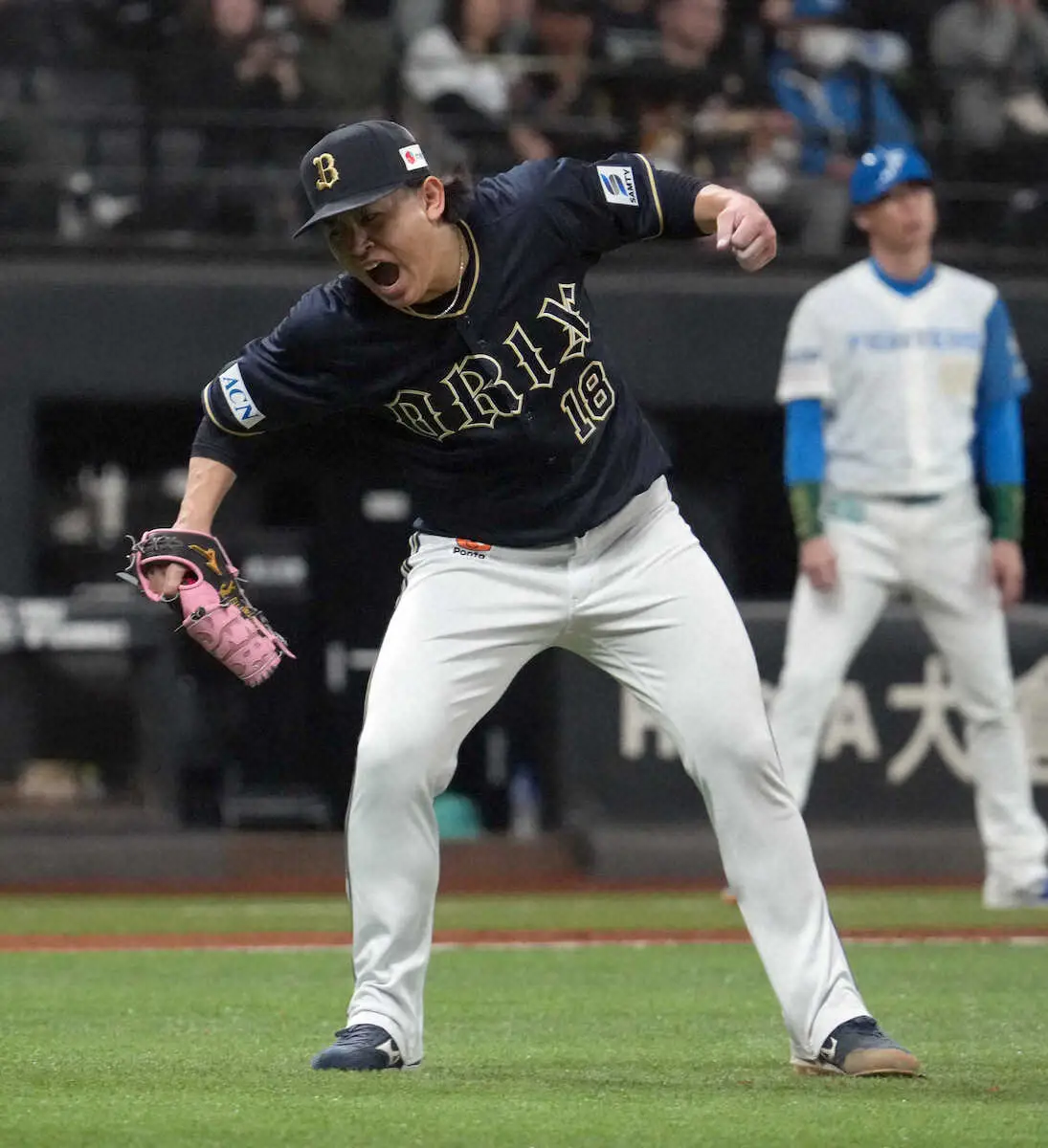 試合前練習で同学年の紅林が腰部を痛め、急きょベンチ外に。ロッカーで言葉を交わした盟友の無念も背負い、8回3失点の粘投。エスコンフィールドでは通算3試合目で待望の初勝利を挙げた。「僕の時は多分、気合を入れてくれているんで。帰ってくるまでいい順位で頑張りたい」。固い絆で結ばれた“みやくれ”コンビの一人として、相方を気遣う言葉に力がこもった。