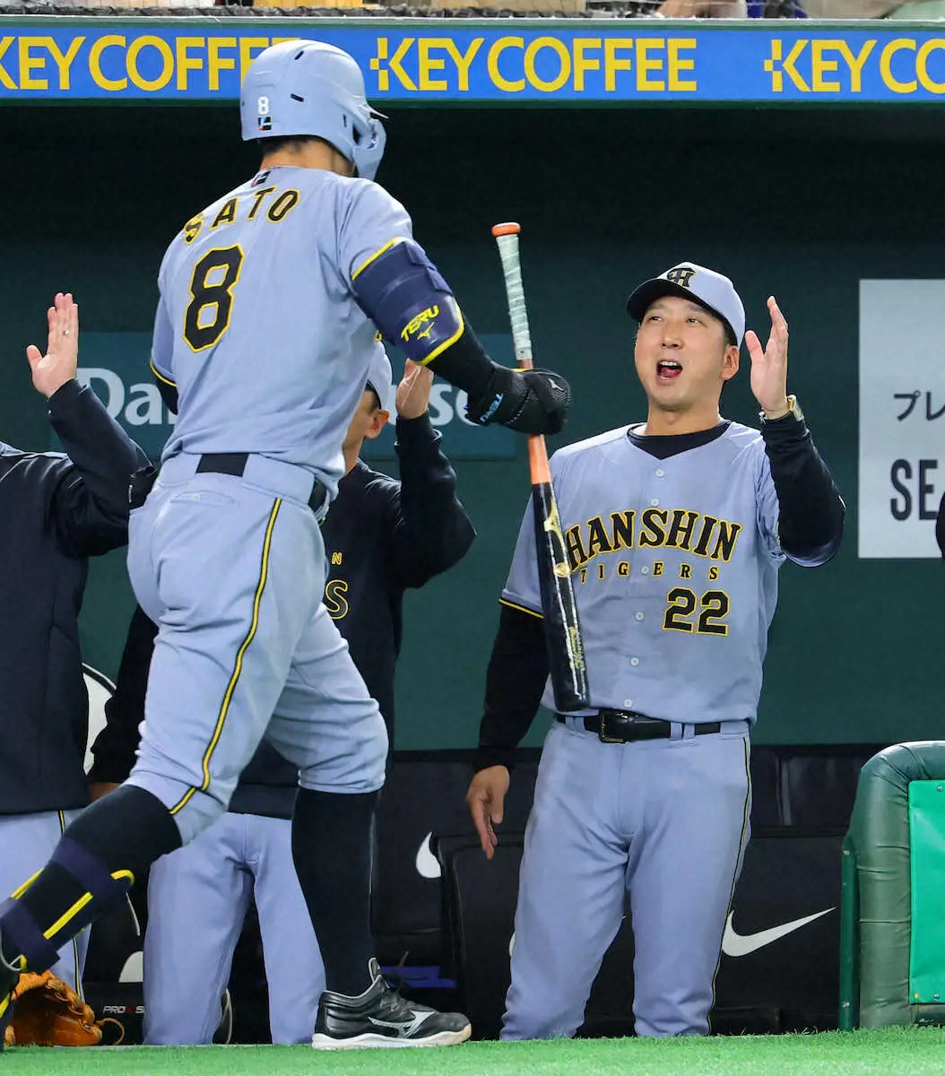 ▼全ての方にハッピー 佐藤(輝)はファンからの期待も大きな選手。記念すべきホームランを打ったということは、タイガースの選手もスタッフも、ファンの方々も、全ての方にとってハッピーな出来事。しかも勝てたしね。