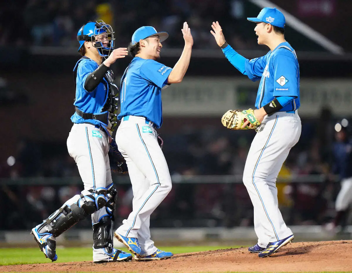 新庄監督は「あの1点デカいですね。こういう勝ち方をゆっくりゆっくり。5勝4敗?もう一回、5勝4敗行こう。5勝4敗、5勝4敗で行けば15?16?の貯金になるから(笑い)もう一回、9試合をそういう4敗できるという気持ちの余裕。上手く行ってないからね、今は。爆発したらこのチームはどこまで上に行くんだってくらいになるから。明日も楽しみます」と独特の言い回しで締めた。