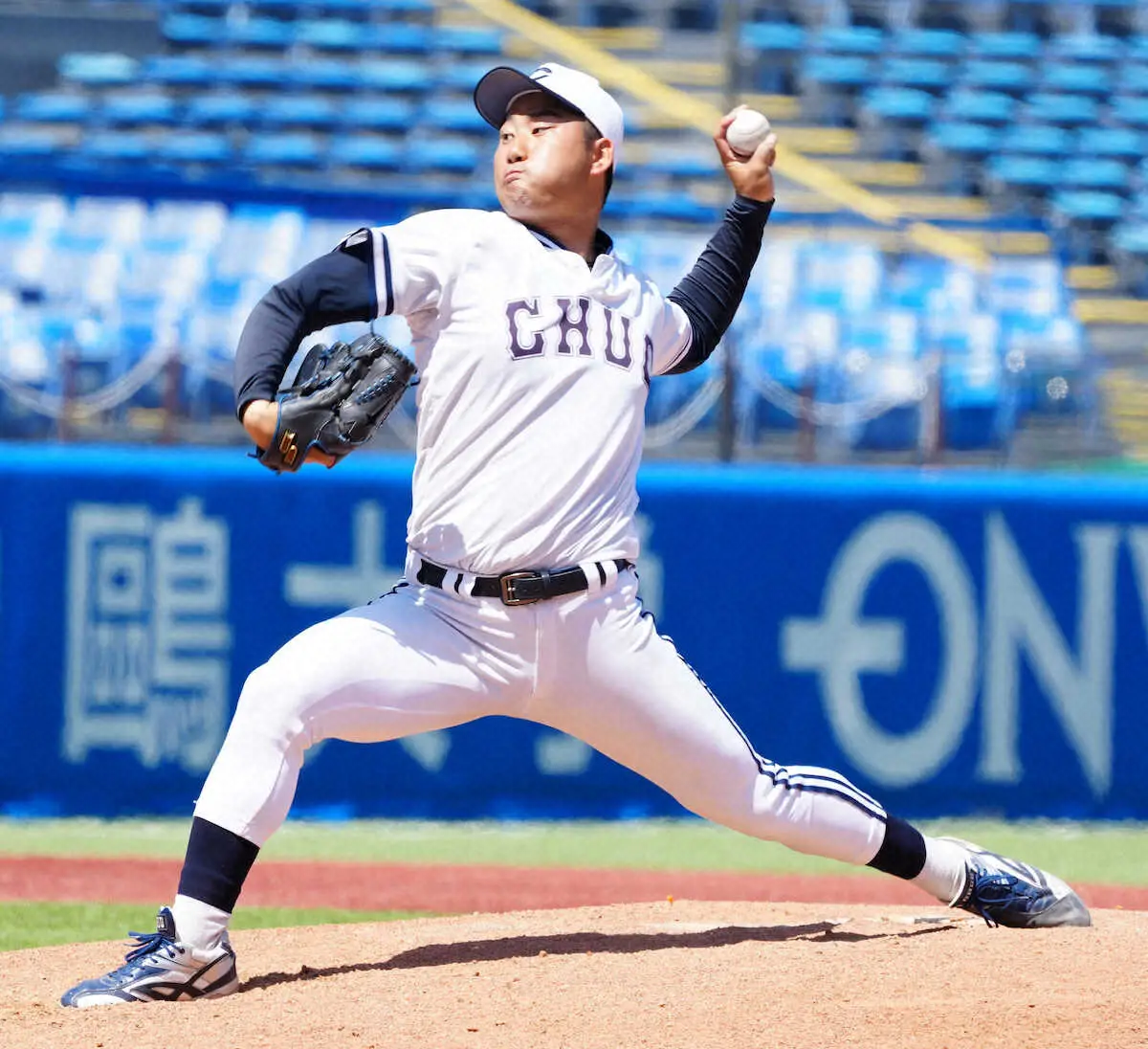 中大は8回にエース左腕・岩城颯空投手(4年)が救援し、2回を完全投球で2三振を奪った。