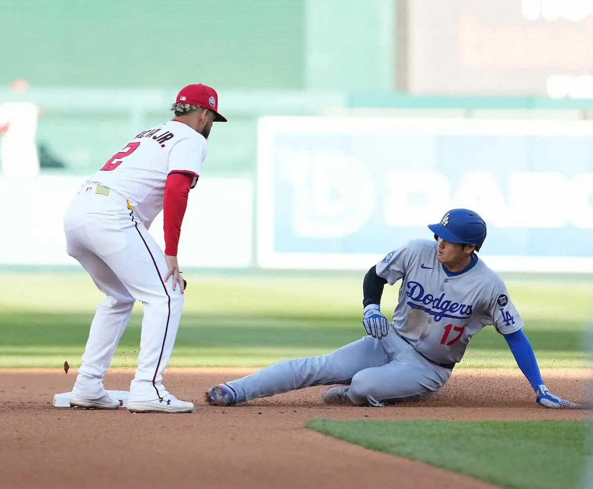 ドジャースの大谷翔平投手(30)が9日(日本時間10日)、敵地でのナショナルズ戦に「1番・DH」で先発出場。8試合ぶりに盗塁を成功させた。