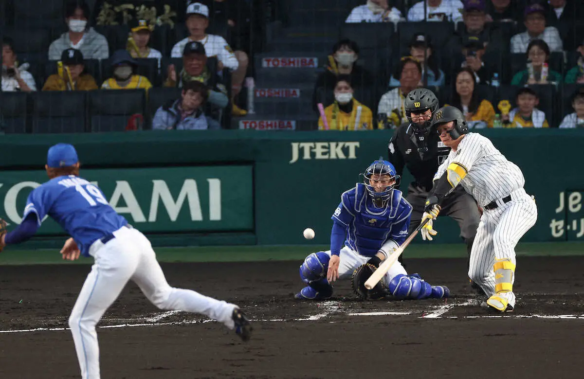 阪神が初回、昨季の最優秀防御率右腕、高橋宏に襲いかかった。中野の右前打を皮切りに、佐藤輝が右翼線への二塁打でチャンスを拡大。森下は追い込まれてからのスプリットに食らいつき、セカンド後方に落ちる同点の2点適時打を放った。