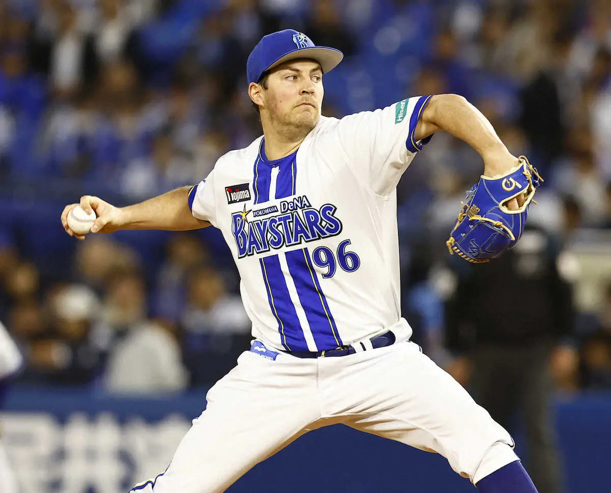 ハマスタで完全復活の雄叫びを上げた。上半身のコンディション不良で復帰登板後に抹消。登板を1回飛ばしマウンドに帰ってきた最強助っ人右腕は、強風が吹く中で初回に2死からサンタナに遊撃内野安打を許すも4番・オスナを左飛に打ち取り無失点。2回には1死無走者から9番の投手・吉村を3球三振に仕留めると、代名詞の「SWORDセレブレーション」と呼ばれる“刀ポーズ”を見せるなど闘志全開。3者凡退斬りで悠然とベンチに引き揚げた。