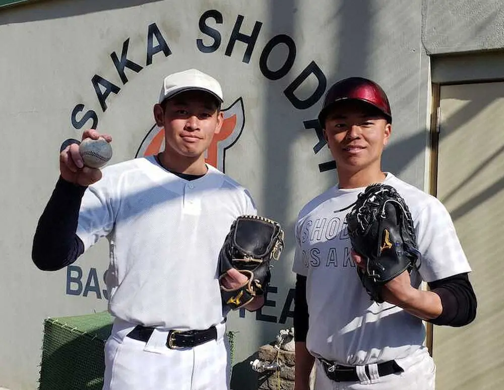 大商大のエース右腕・鈴木(左)と捕手の蜷川