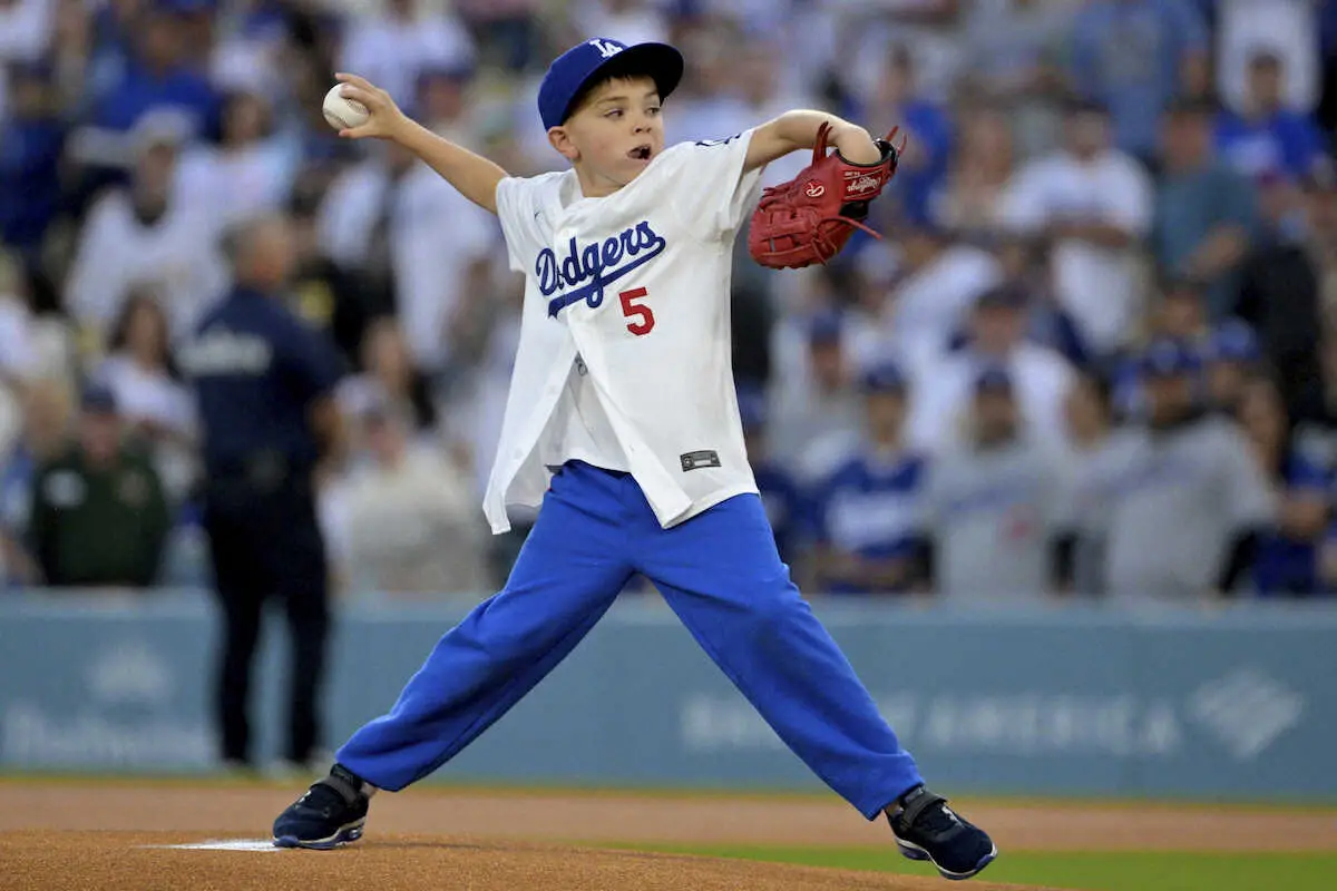 ドジャースのフレディ・フリーマン内野手(35)の長男、チャーリー君が11日(日本時間12日)、ドジャースタジアムで行われるカブス戦の始球式に登板。観衆から大きな拍手が送られた。