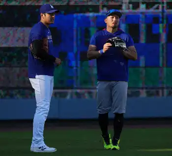 ドジャースの大谷翔平投手(30)が11日(日本時間12日)、カブスの鈴木誠也外野手(30)と試合前に談笑した。