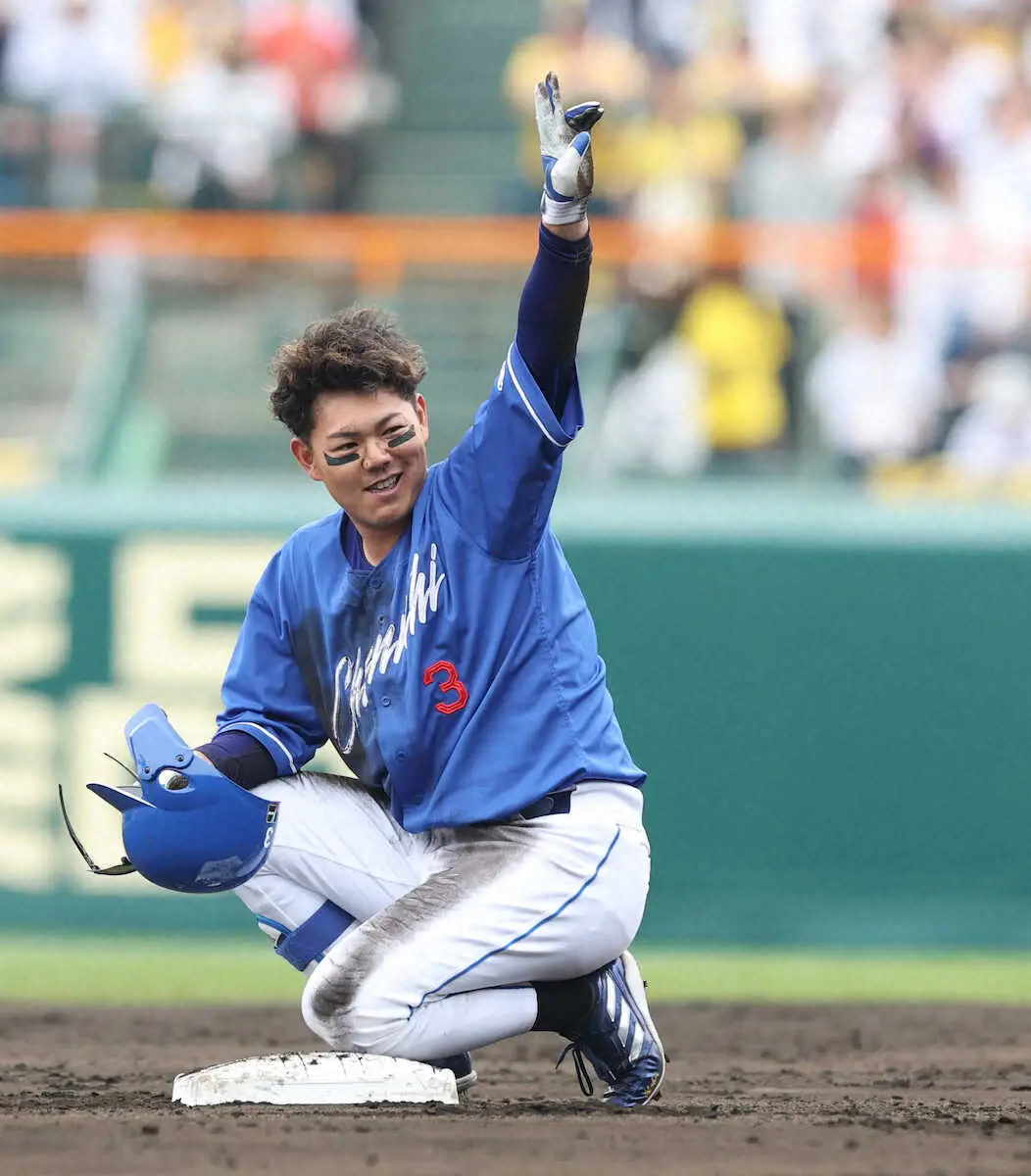 4回無死一塁での第2打席。阪神先発・西勇から右翼線への打球を放ち、二塁にヘッドスライディングした。