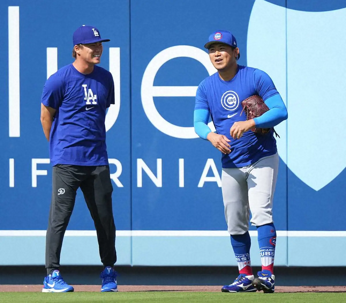 カブスの今永昇太投手(31)が12日(日本時間13日)、敵地でのドジャース戦前にドジャースの山本由伸投手(26)と約10分間談笑した。