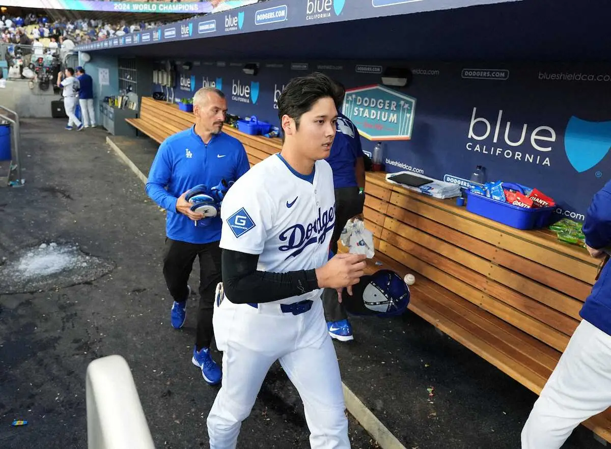 <ドジャース・カブス>カブスに敗れ、クラブハウスに引き揚げるドジャース・大谷(撮影・沢田 明徳)