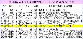 前回大会の決勝で敗れた悔しさは忘れていない。ド軍のアンドルー・フリーマン編成本部長から「やってみないか?」と打診され、「YES」と即答。「またコーチをやれるのが本当に楽しみ」。監督は同じく2大会連続でデローサ氏が務め、投手コーチにヤンキースなどで通算256勝を挙げたアンディ・ペティット氏が就任するなど豪華な首脳陣が誕生した。