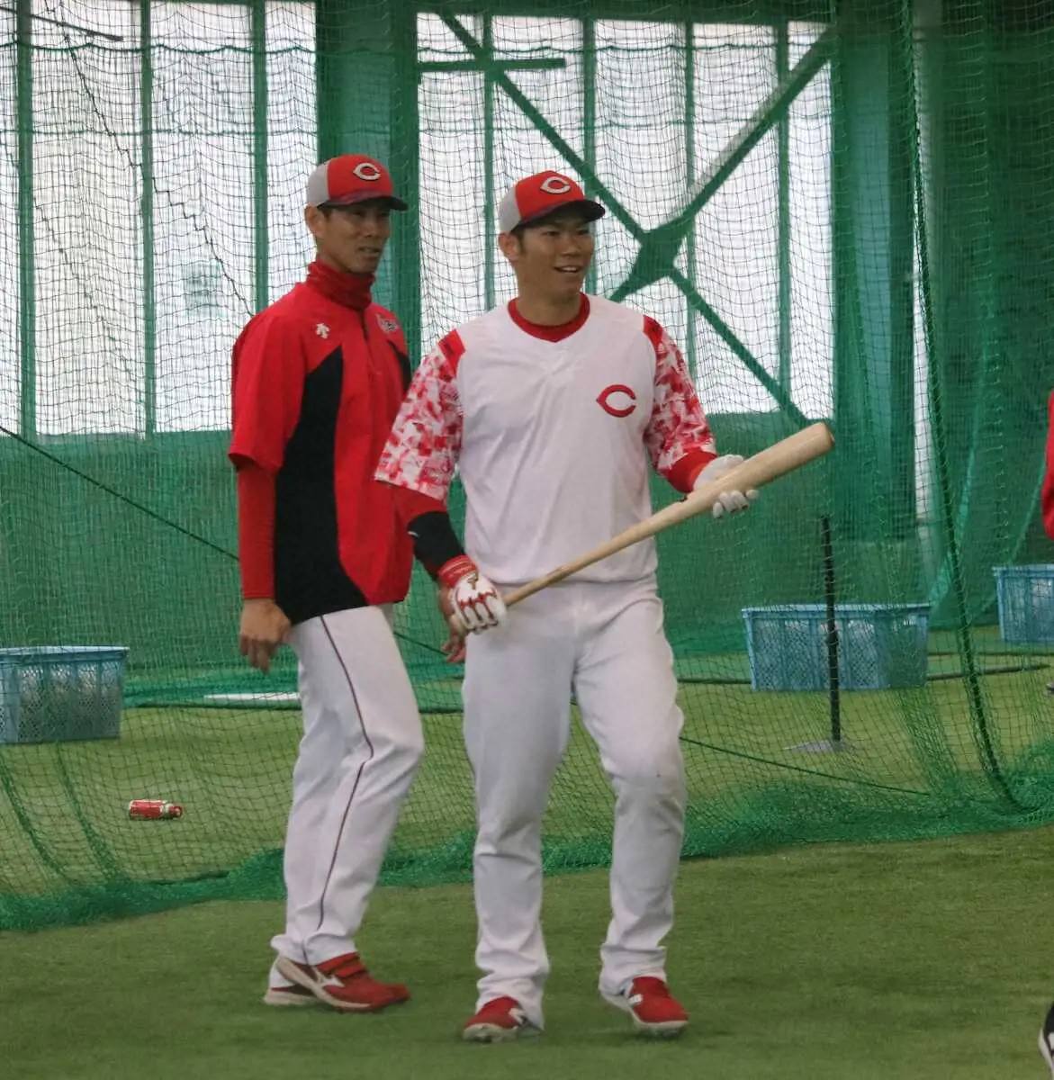 廿日市市の大野練習場でリハビリを続ける坂倉の表情は明るかった。11日に屋内での打撃練習を再開し、13日の練習でも力強いスイングを披露。まだ状態は100%ではないものの、実戦復帰へ道筋が見えてきた。