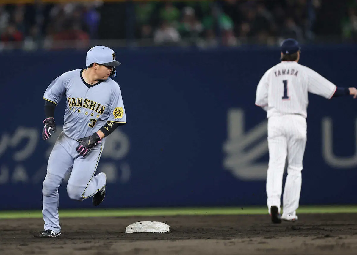 1―0の4回、5番・大山悠輔内野手が先頭打者として四球で出塁すると、1死後、7番・梅野隆太郎捕手との間でヒットエンドランを敢行。梅野が右翼へライナー性の打球を放った。ただ、右翼・丸山和の正面へ飛び、右飛となった。
