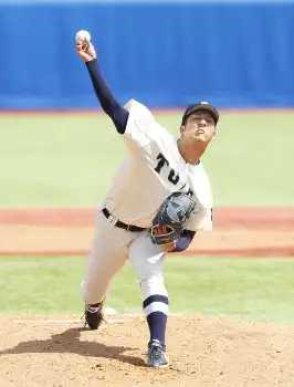 「全体的に打たせて取る投球ができた」。エースは冷静に振り返ると「亜大戦は力みからテークバックが小さく体の開きも速くなって、真っ直ぐが弱くなったりコントロールが乱れたので、そこを修正しました」。8日の亜大戦。8回途中から登板もタイブレークの10回2死満塁から逆転サヨナラ満塁弾を喫した反省を生かした。
