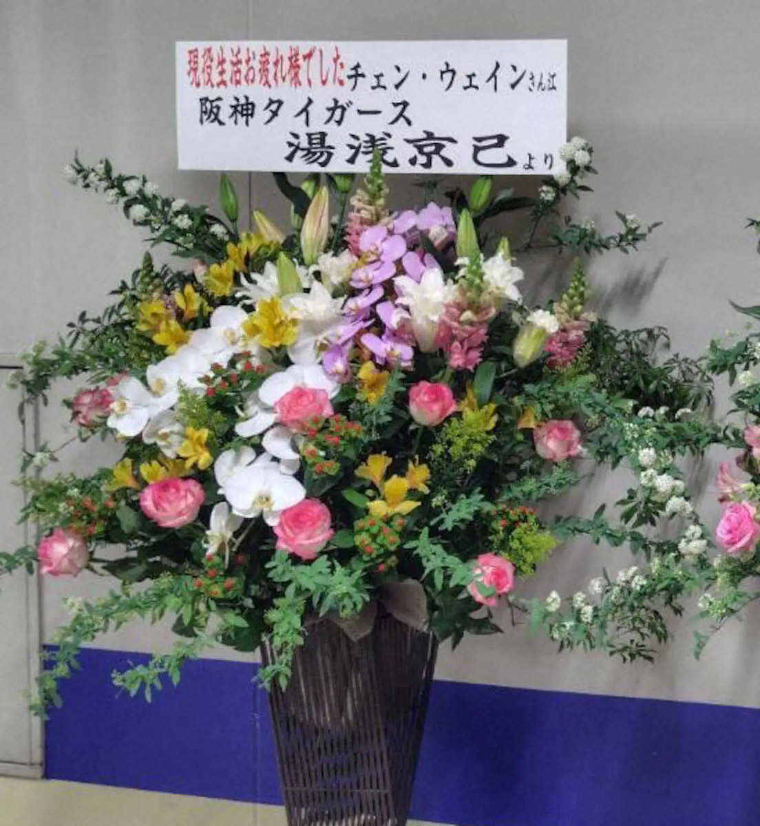 【虎番リポート】阪神・湯浅がチェン・ウェイン氏に花を贈った理由 実は鳴尾浜で「すごくお世話になった」