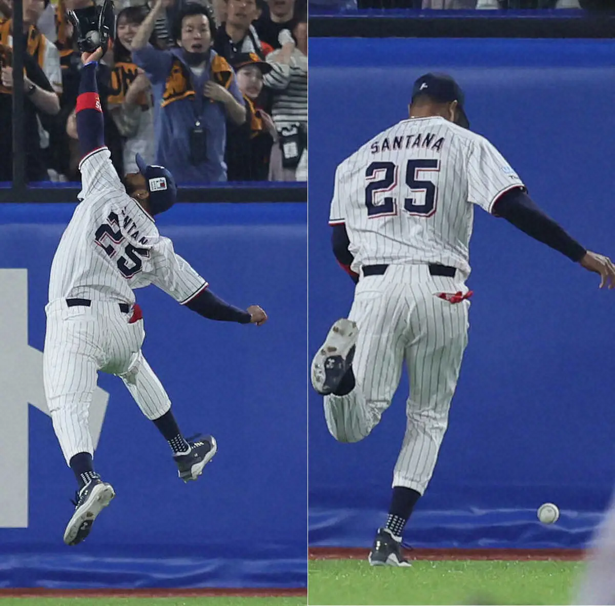 <ヤ・巨>7回、若林の逆転2点適時二塁打に盛り上がる阿部監督(左から4人目)ら巨人ナイン(撮影・木村 揚輔) Photo by スポニチ 巨人が珍しいプレーで逆転!若林の飛球を左翼サンタナがキャッチ中にポロ… ギャラリーで見る この記事のフォト 2025年04月19日の画像一覧 もっと見る 2025年04月19日の画像をもっと見る