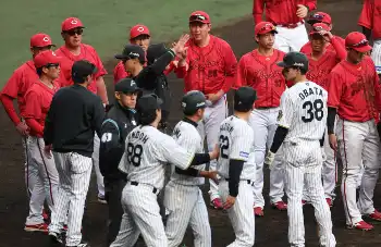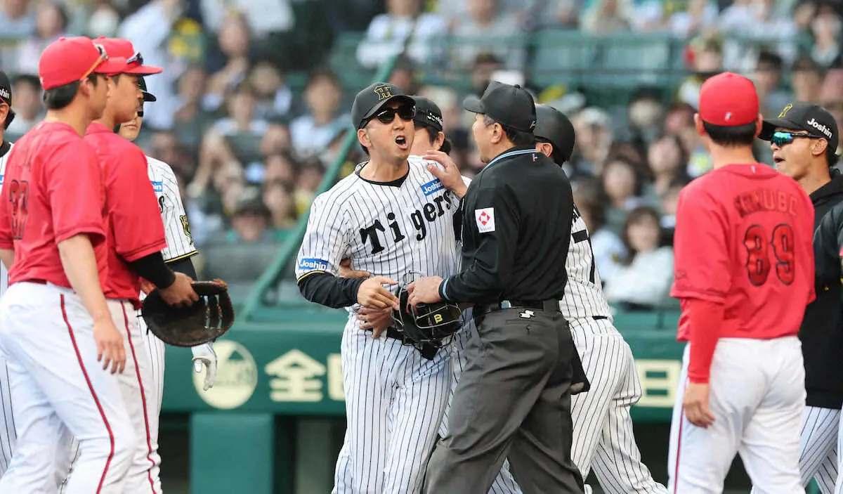 <神・広(6)>8回、坂本が頭部に死球を受け、激昂する藤川監督(手前右から2人目)と説明を求める新井監督(右から4人目)(撮影・平嶋 理子) Photo by スポニチ 阪神 藤川監督が激高 8回に坂本への頭部死球 一塁ベンチ飛び出して広島… ギャラリーで見る この記事のフォト 2025年04月20日の画像一覧 もっと見る 2025年04月20日の画像をもっと見る
