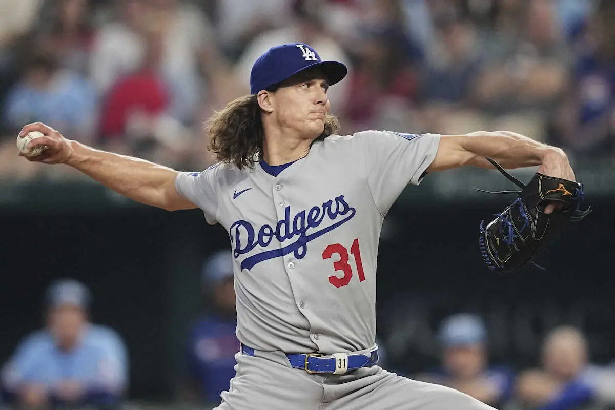 ドジャースのタイラー・グラスノー投手(31)が20日(日本時間21日)、敵地でのレンジャーズ戦に先発したが、5回途中に降板するアクシデントが起きた。この試合は大谷翔平投手が「1番・DH」で先発出場と産休明け初戦となった。球団発表では「下肢のけいれん」と診断された。