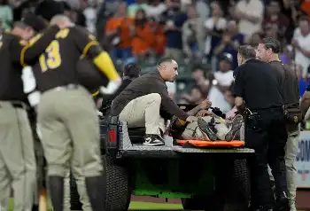 パドレス・アラエス担架で緊急搬送 一塁付近で衝突→負傷交代も「容態は安定」敵地ファンも無事願う