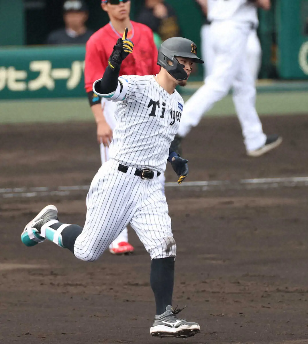 初回2死二塁で迎えた1打席目。1ストライクから森の外角142キロの直球をコンパクトにはじき返した滞空時間の長い打球は、バックスクリーン左へ着弾した。開幕から続いていた本拠地でのノーアーチを6試合で止めた放物線。鬱憤(うっぷん)のたまっていた虎党を総立ちにさせたが、これは序章に過ぎなかった。