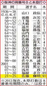 1本目のアーチで通算「90」本塁打に到達。創設「90」周年のメモリアルイヤーに、歴代の背番号8の選手では福留孝介の89本を抜いて単独最多となった。くしくもこの日、福留氏は甲子園でテレビ解説。虎党にもレジェンドにも、90、91号連発で真価を見せた。