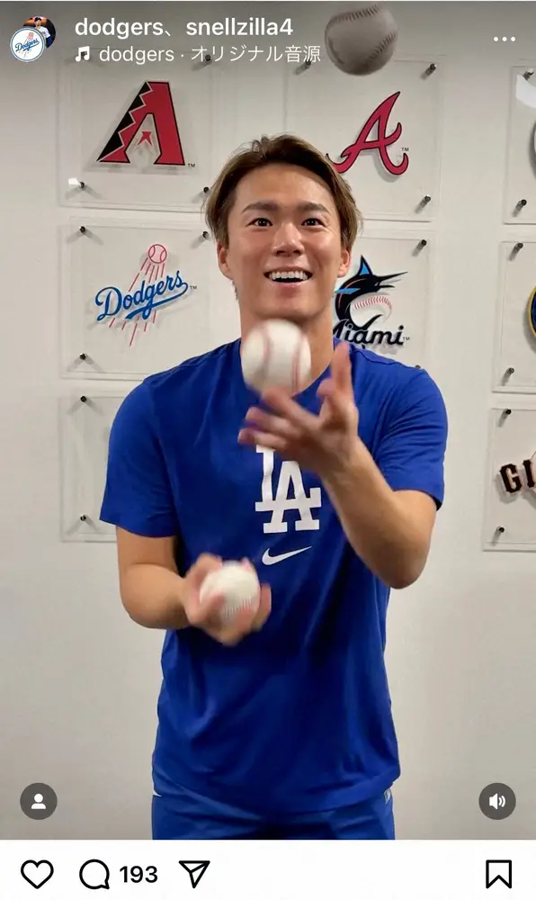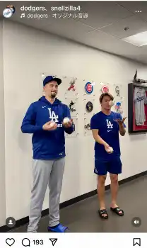 ドジャースの球団公式インスタグラムが21日(日本時間22日)に更新され、山本由伸投手(26)がサイ・ヤング賞2度の実績を誇る先発左腕、ブレーク・スネル投手(32)に“完勝”する様子が公開された。