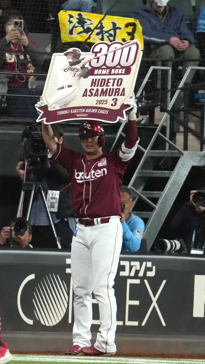 楽天の浅村栄斗内野手(34)が22日の日本ハム戦で本塁打を放ち、プロ野球史上47人目の通算300本塁打を達成した。