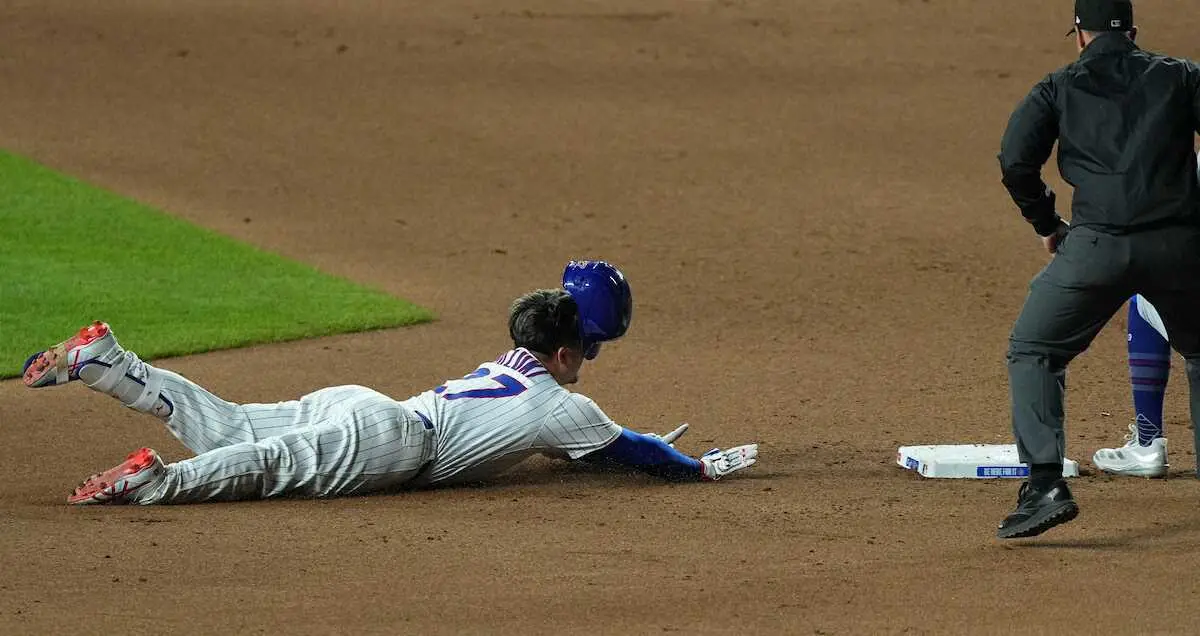 22日のドジャース戦で6回に左前打後、相手失策で二塁へ進塁したカブス・鈴木(27番)(AP) Photo by AP カブス指揮官 再び右手首痛め欠場の鈴木誠也に“ヘッドスライディング禁止… ギャラリーで見る この記事のフォト 2025年04月24日の画像一覧 もっと見る 2025年04月24日の画像をもっと見る