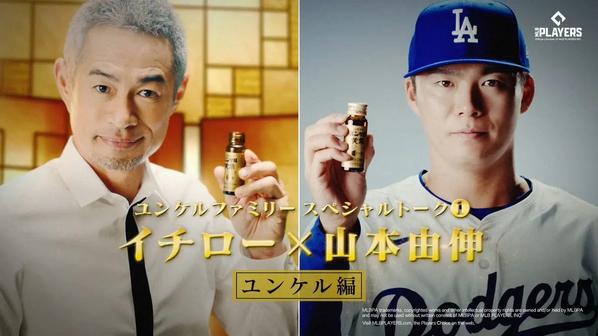 ミニドリンク剤「ユンケル黄帝」を販売する佐藤製薬株式会社は4月25日から7月31日まで、新キャンペーン「ユンケルファミリーキャンペーン」を実施する。キャンペーンの一環として、日米通算4367安打を記録し日米両国の野球殿堂入りを果たした、マリナーズ球団会長付特別補佐兼インストラクターのイチロー氏(51)とドジャース・山本由伸投手(26)が出演する「ユンケルファミリースペシャルトークムービー」をWEB限定で公開。ともに同社のCMに出演する“ユンケルファミリー”の山本からの質問に、イチロー氏がユーモアたっぷりに答える“スペシャル対談”となっている。