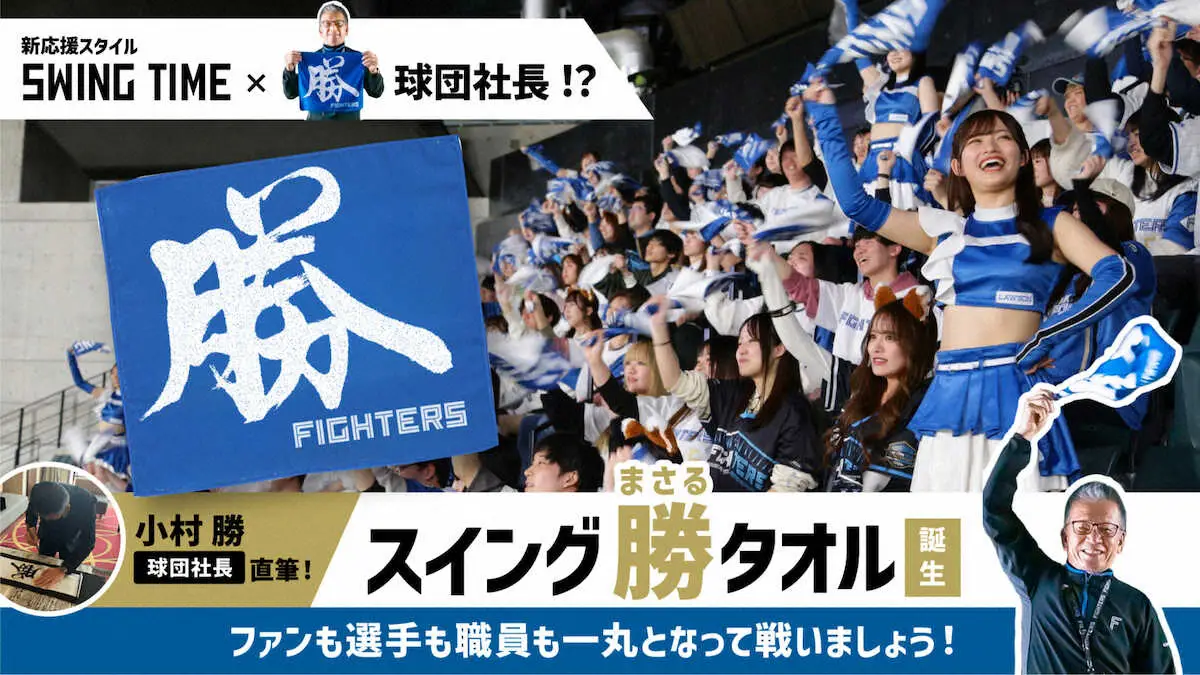 本人もびっくりの珍応援グッズが登場だ。25日のロッテ戦から、日本ハムの小村勝球団社長兼オーナー代行の名前が書かれた「スイング勝(まさる)タオル」が発売される。