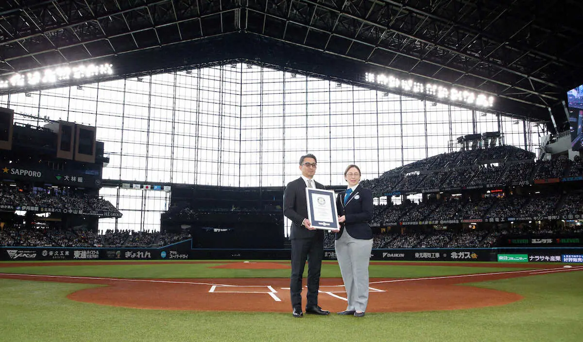 前沢氏は「凄く光栄ですし、こういった名誉ある賞をいただいて大変ありがたく思っています。ファンのみなさまに支えられたことを痛感する2年間だった。これからもファンのみなさまに(エスコンは)子供のように育てていただくのかなと思っています」と笑顔。今後についても「毎年新しいことを生み出しているので、数年後にはまた違うギネスが頂けるように何か考えて申請したい」と意欲を示した。