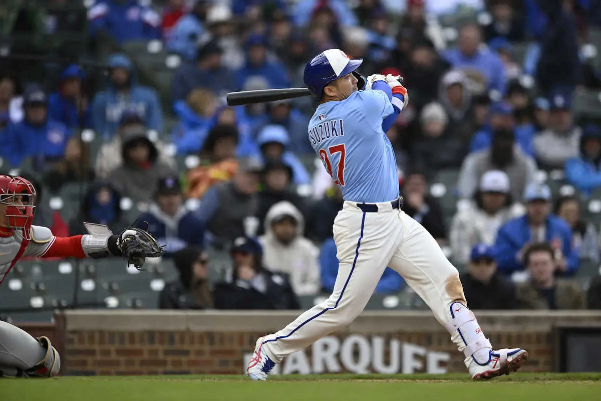 カブスの鈴木は「3番・DH」で右手首痛から2試合ぶりに復帰。3回は外角変化球を、6回は高めの速球をいずれも左翼線に運ぶ二塁打とし3連勝に貢献した。