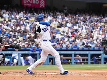 第2打席は4―2の2回1死一塁の場面。2ボールから3球目の内角低めシンカーを強振すると、打球速度113.3マイル(約182.3キロ)の痛烈な打球が右翼線で弾み、大谷が悠々と二塁に到達した。二、三塁とすると、ベッツに犠飛が生まれ、追加点を演出した。