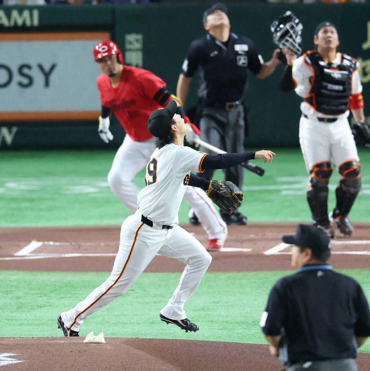 <巨・広>3回、無失点に抑えた山崎(撮影・光山 貴大)