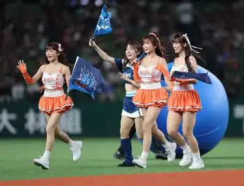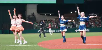 台湾チアがベルーナD降臨!お腹チラリ オレンジ衣装 統一ライオンズとコラボイベント