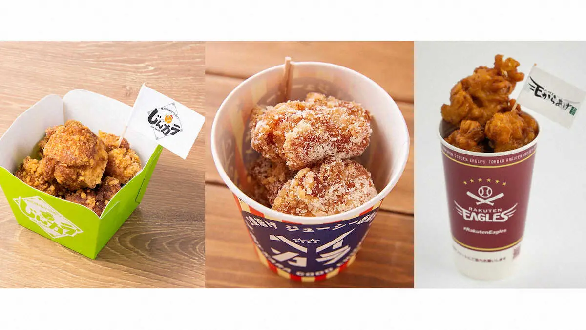 千葉ロッテマリーンズは5月5日から28日に開催されるグルメイベント「から揚げ・餃子・ポテトフェス」で、神宮球場6年連続人気No.1の名物グルメ「じんカラ」と横浜DeNAオリジナルのグラナパダーノチーズを絡めて食べるから揚げ「ベイカラ」、楽天オリジナル宮城県産森林どりと仙台味噌を使用したから揚げ「イーグルスからあげ」を販売すると発表した。