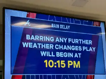 試合時刻を伝えるブレーブス本拠トゥルーイスト・パークの掲示板 Photo by スポニチ ドジャース ブレーブス戦は現地午後10時15分開始 約3時間遅延 佐々木朗… ギャラリーで見る この記事のフォト 2025年05月04日の画像一覧 もっと見る 2025年05月04日の画像をもっと見る