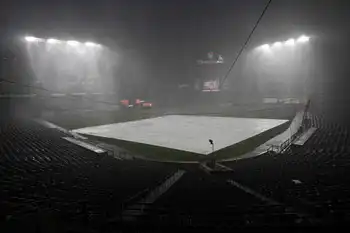 抜群の立ち上がりを見せた菅野に“不運”が襲い掛かった。初回を終え、2回の登板に向かう前、降雨が強くなり試合は中断。それでも57分間の中断後に続投した。先頭のガルシアには左前打を許したが、続くマッシーを二ゴロ併殺打。レンフローは左飛に打ち取った。3回は3者凡退。調整が難しい中、初回は9球、2回が6球、3回が9球と3回を24球で投げ終えるなど効率よくアウトを積み重ね、高い適応力を示した。