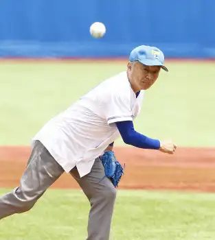 平野氏は74年入学、俊足巧打の外野手として活躍。4年時には慶大、立大から勝ち点を奪うなど強い東大の主力選手だった。81年、監督に就任すると東大史上初の早慶から勝ち点を挙げシーズン6勝をマーク。優勝の可能性もあったことから「赤門旋風」と言われた。2度、計8年間の監督生活で33勝を挙げた。この日使用した青いグラブは還暦時に教え子から送られた記念品。「ストライクを投げたかったね」と“東大の名将”は笑顔で振り返っていた。