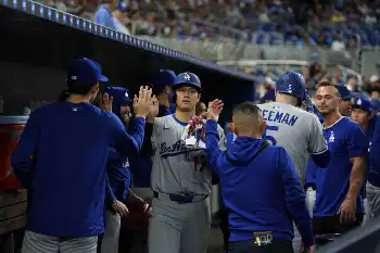 <マーリンズ・ドジャース>3回、、フリーマンの2ランで生還した大谷はナインの出迎えを受ける(撮影・沢田 明徳) Photo by スポニチ 大谷翔平が5年連続2桁盗塁 3回に四球→二盗→フリーマン2ランで生還 「50―… ギャラリーで見る この記事のフォト 2025年05月06日の画像一覧 もっと見る 2025年05月06日の画像をもっと見る