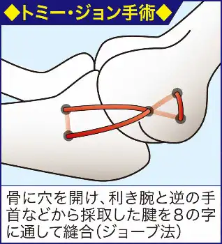 トミー・ジョン手術の図解 Photo by スポニチ トミー・ジョン手術ってぶっちゃけ費用はどのくらい? 元ソフトバンク球… ギャラリーで見る この記事のフォト 2025年05月11日の画像一覧 もっと見る 2025年05月11日の画像をもっと見る