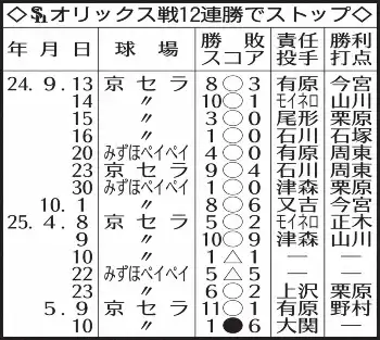 パ・リーグ   ソフトバンク1-6オリックス ( 2025年5月10日    京セラD )