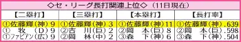 リーグトップを独走する11本塁打に加え、実は3三塁打、9二塁打も同トップ。驚異の長打率・639も断トツの“長打王”だ。黄色い声援に彩られたヒーローインタビューでは「(打席では)常に攻める意識で。(だから)いいバッティングができているんじゃないかなと思います」とうなずいた背番号8。“吉兆星”に続く2年前の再現を期し、藤川阪神の急先鋒を担う。(石崎 祥平)