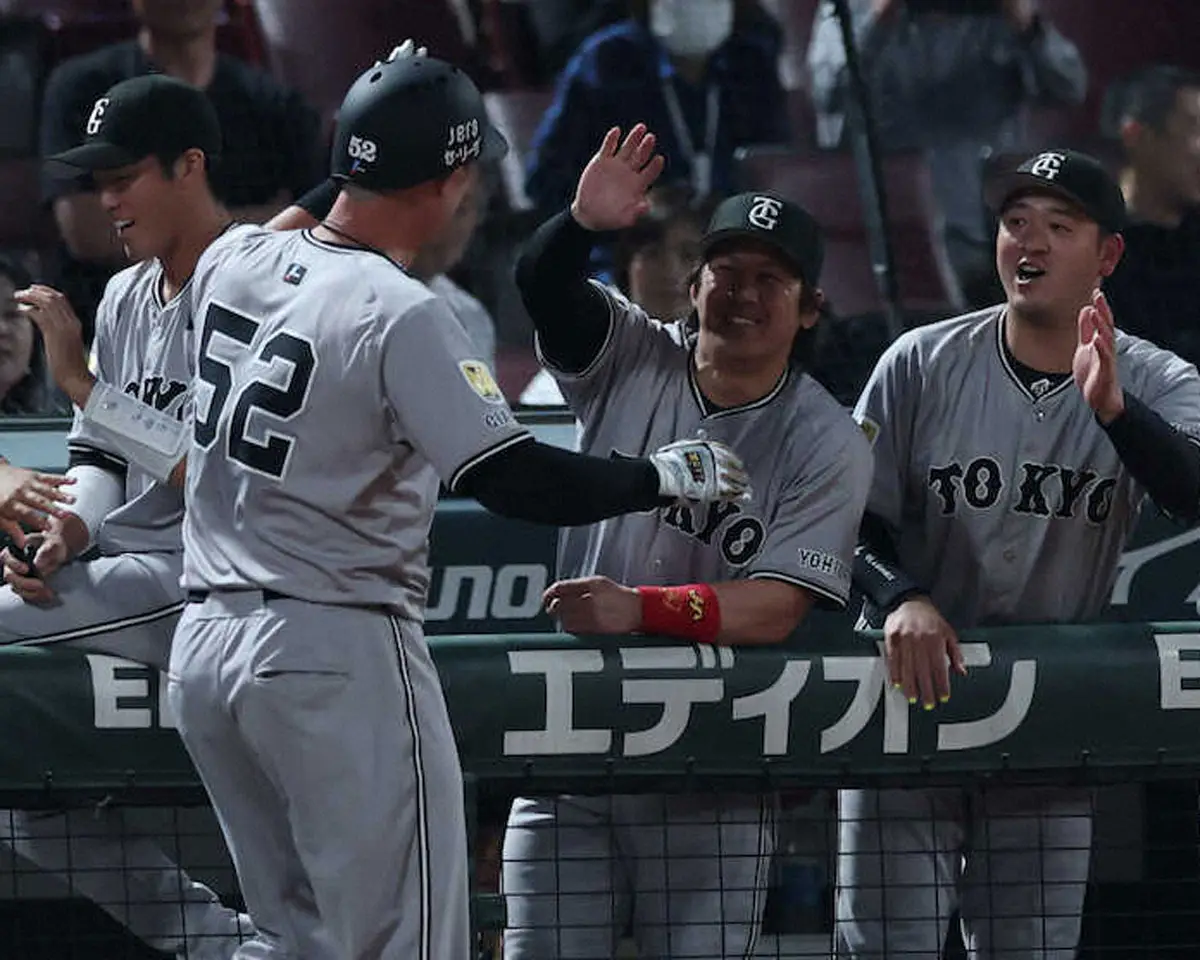 激闘の巨人初戦を終えた25歳は、第2打席の一発を振り返り「行ってくれーっと思いながら走ってました」と回想。「6、7回ぐらいで久しぶりに足がつりそうになっていたんで。そっかー、試合の前からけっこうバタバタしてたんで、昨日と今日で結構、激動だったと思います」と汗を拭った。