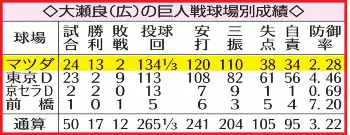 巨人戦は通算50試合目の登板。昨季から自身3連敗と苦戦が続いていたが、負の流れも止めた。対巨人通算17勝目で、13勝(2敗)がマツダスタジアム。相性の良さは健在だった。