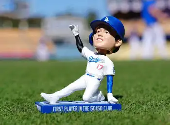 大谷はさっそうと球場を後にした。試合終了から約20分後。その手には、昨年達成した史上初の「50―50」を記念した、自身のスライディング姿のボブルヘッドがあった。