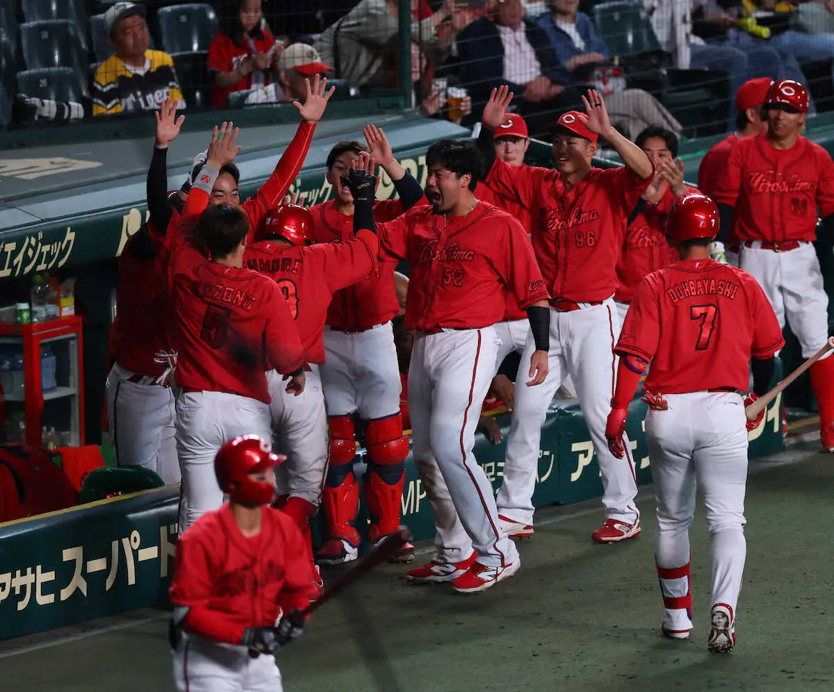 これでは終わらない。なおも2死二塁で、続く矢野も左中間へダメ押しの適時二塁打を放った。7回に追いつかれ、嫌な雰囲気が漂う中、土壇場で底力を発揮。チームは首位攻防第1戦を制して、4月24日以来となる首位に浮上した。5月2度目の4連勝で、貯金5は今季最多タイ。4月25日~5月2日にかけては7連敗を喫するなど苦しい時期を過ごした。それでも反発力で巻き返しに転じた新井監督も手応えをのぞかせた。