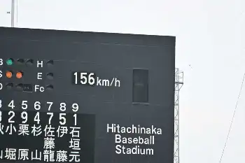 156キロをマークした際にはひたちなか市民球場で観戦する観客から「ウオォ!」と声が挙がっていた。試合は7回表まで進行し、健大高崎が2―0でリードしている。